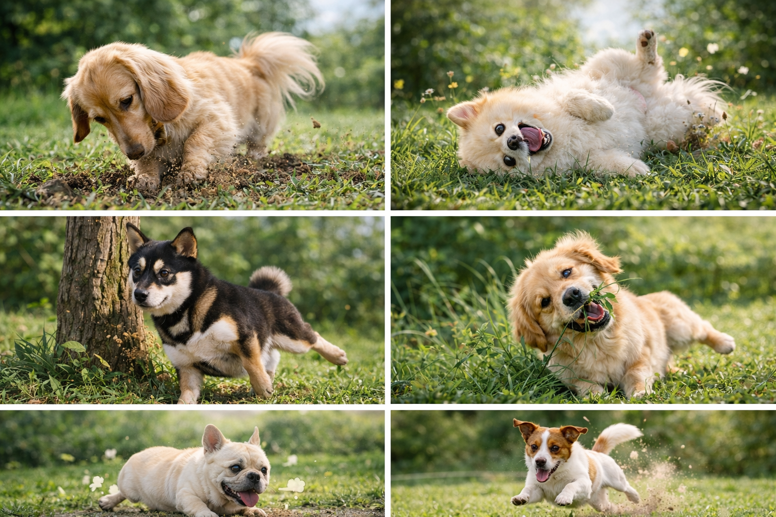어떤 강아지들은 잔디나 흙을 놀이처럼 즐겨요. 긁고 → 흙 튀기고 → 다시 냄새 맡고 → 또 긁고… 이 루프 자체가 재미가 되죠.