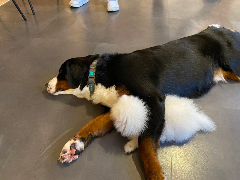 18. 앉기 또는 눕기 (Sitting or lying down) – 상황이 긴장되거나 불안할 때, 앉거나 누워서 자신이 공격적이지 않다는 것을 나타냅니다. 이는 다른 개나 사람을 안정시키는 데 도움이 됩니다.