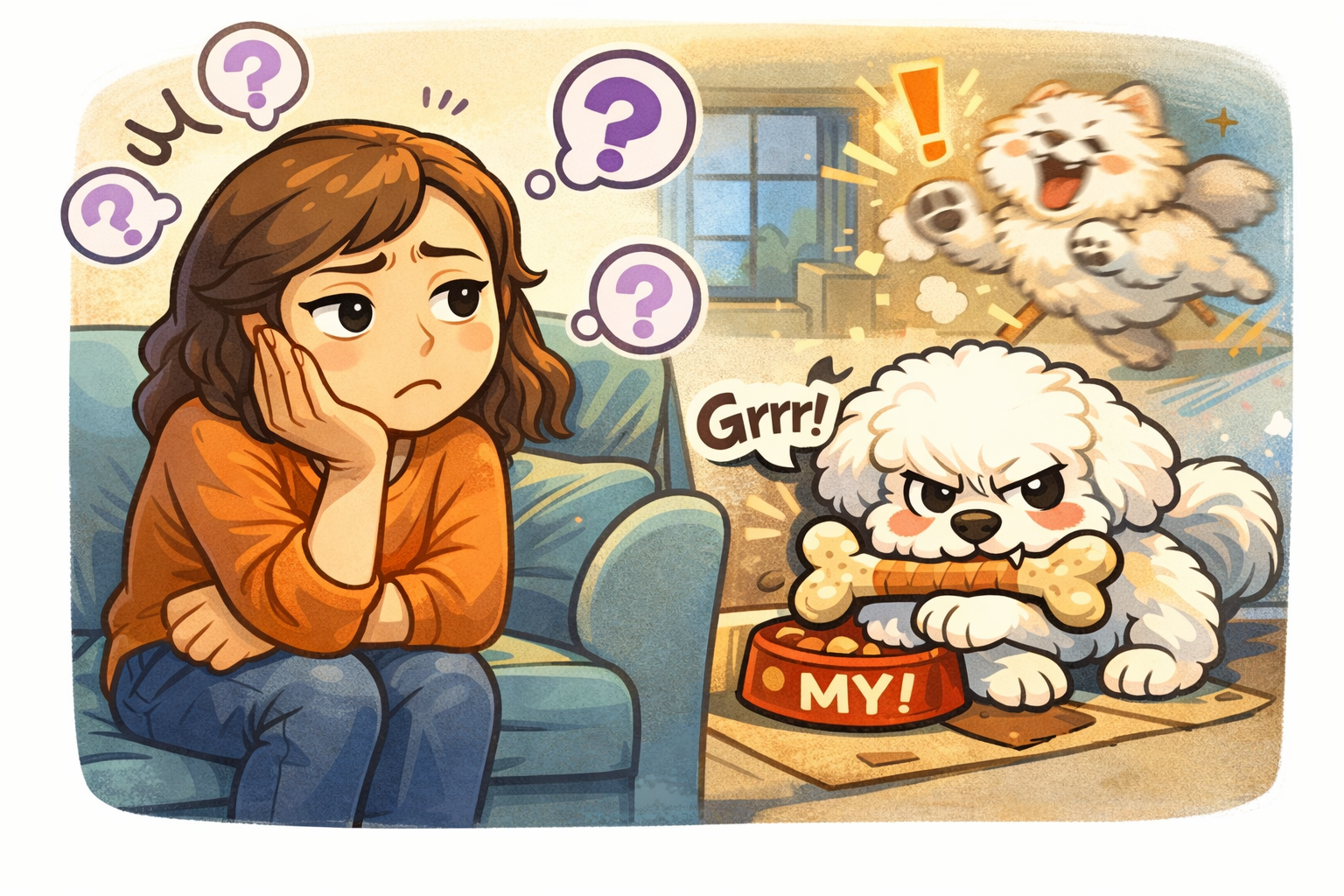 장난감, 간식, 소파, 보호자를 지키며 으르렁. 빼앗으려 하면 악화되기 쉽습니다. 교환(트레이드) + 접근 규칙이 정석이에요.