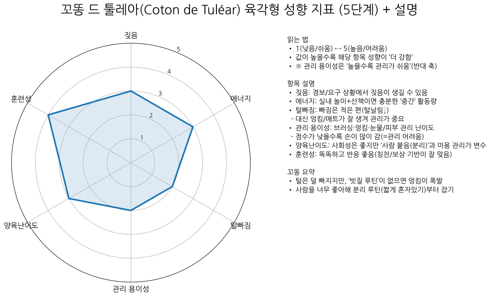 꼬똥은 “훈련이 어려운 견종”이라기보다, 분리(혼자 쉬기) + 그루밍 협조를 안 잡아두면 생활이 어려워지는 견종이에요.