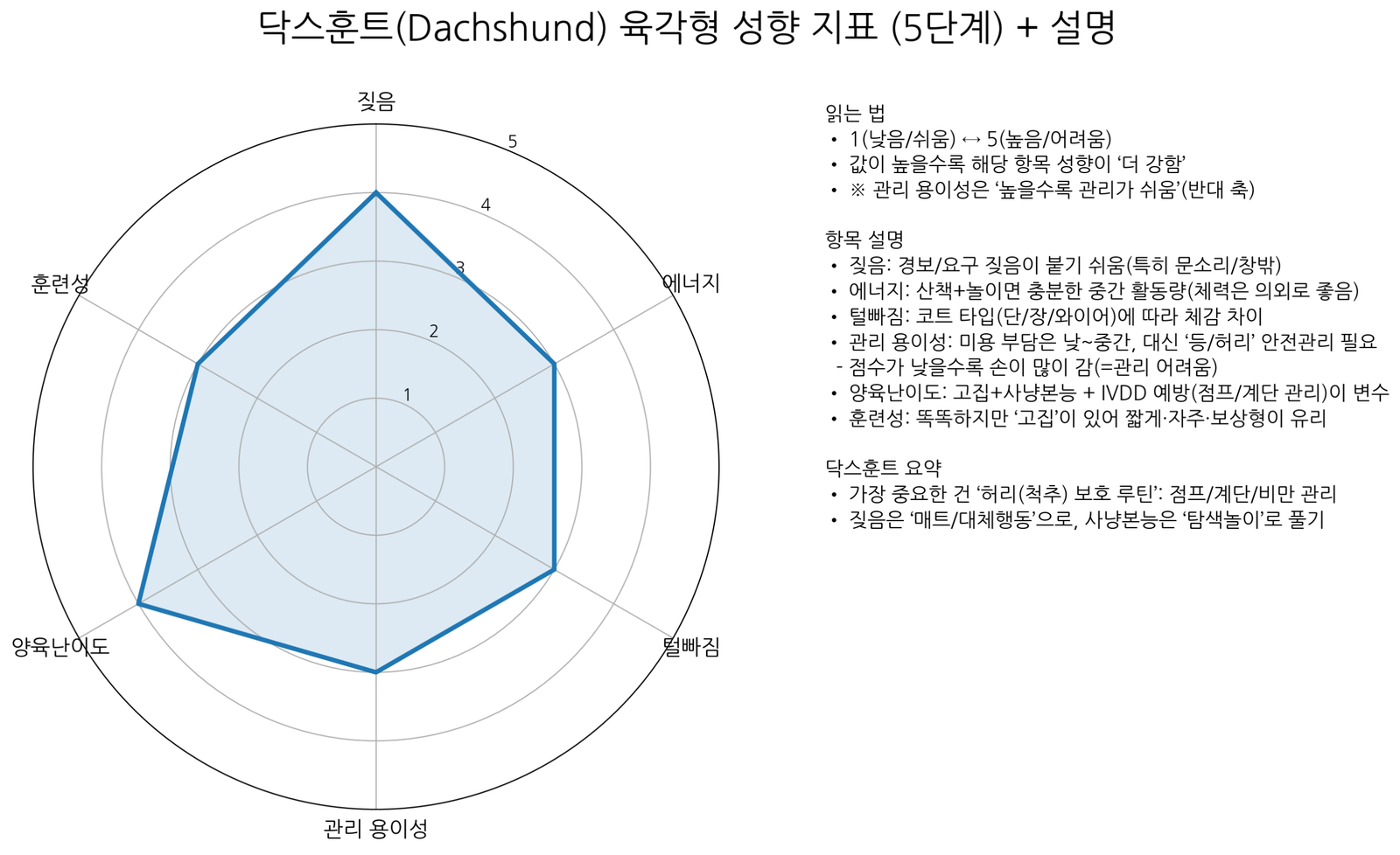 * 견종 특성은 “경향”이며 개체차가 큽니다. 특히 닥스훈트는 체형 특성상 생활 환경(점프/계단/체중)이 건강을 크게 좌우합니다.
