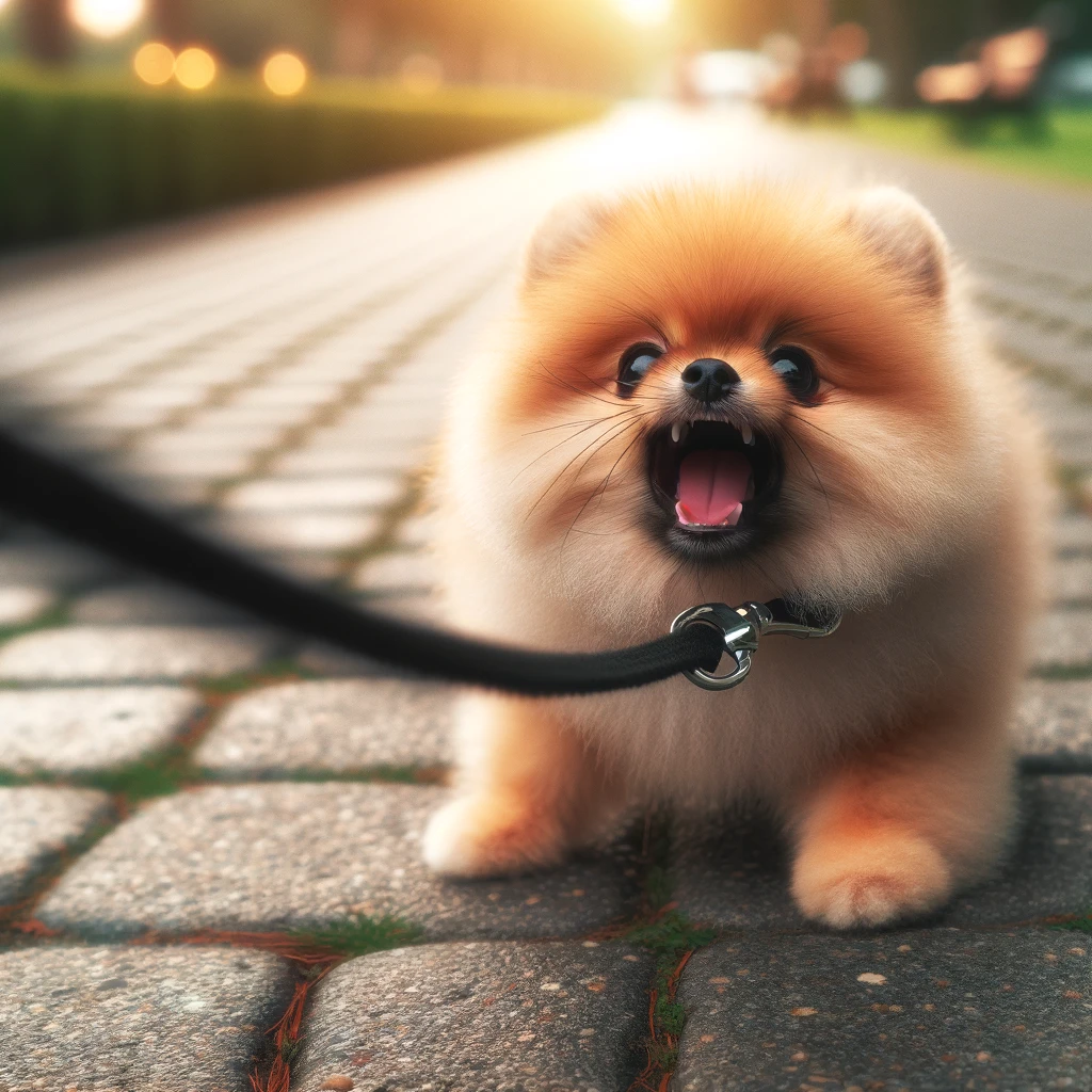짖기 시작하면 일단 멈추세요. 리드줄을 살짝 채며 안된다고 표현합니다.