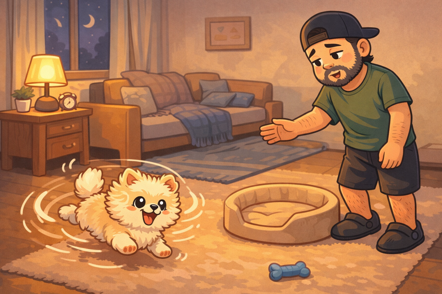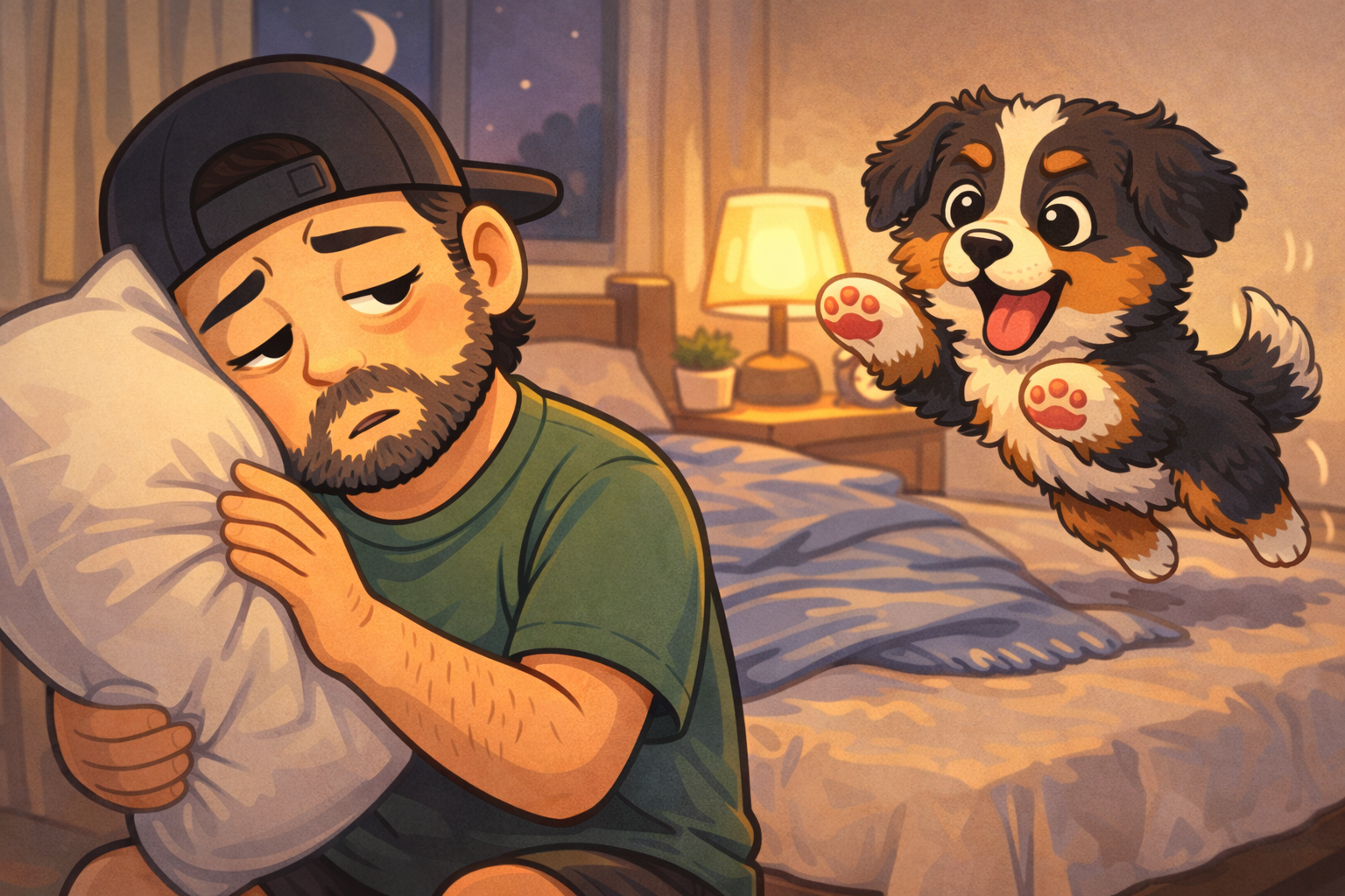 밤에 신난 강아지 – 제발 자자!